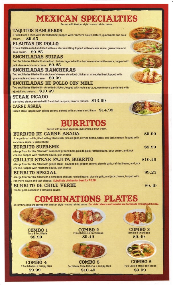 Two Enchiladas and Crispy Taco, served with cheese enchilada, Mexican style rice and refried beans. Add shredded chicken for $. or shredded beef for $.